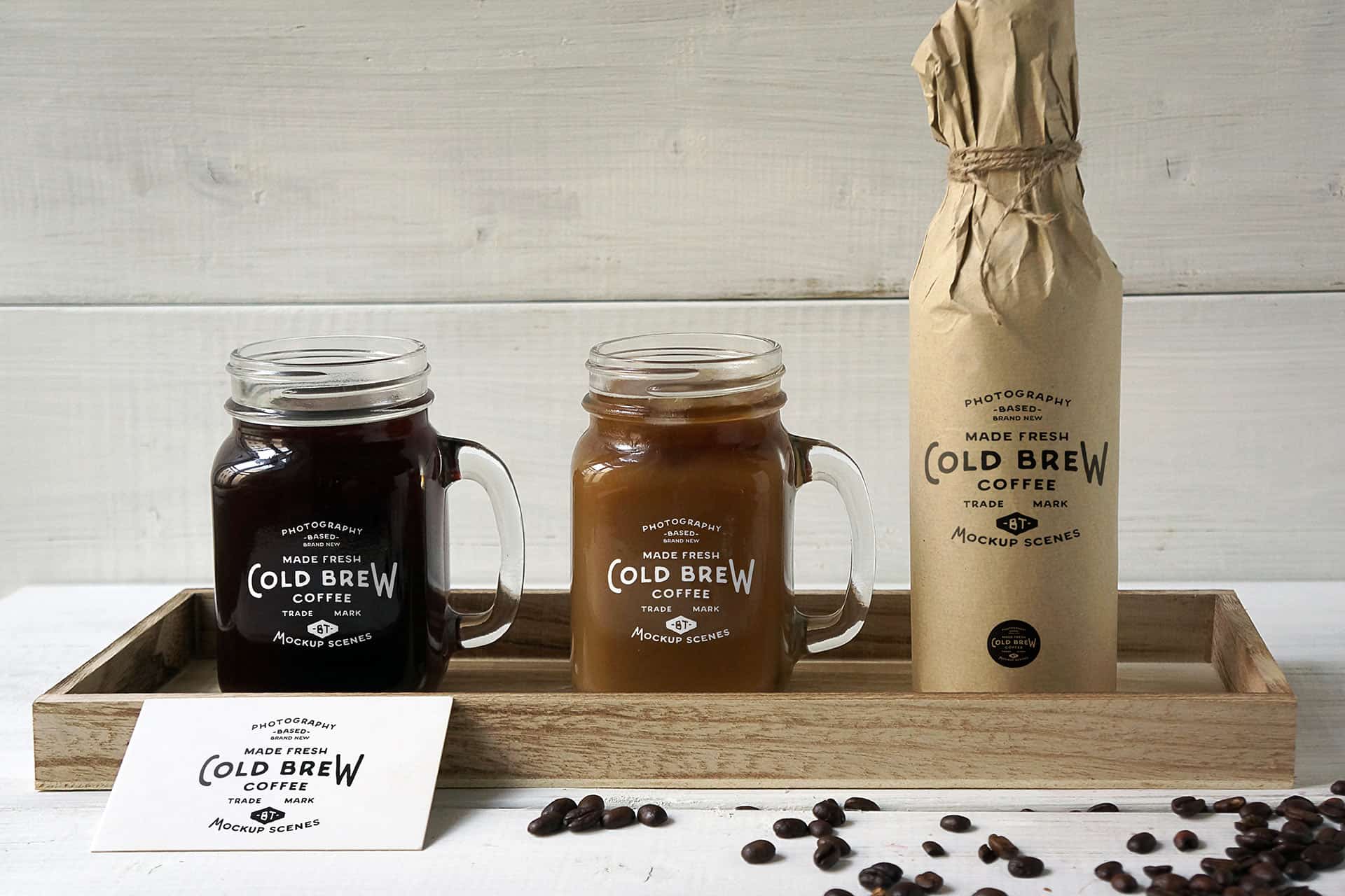 These photorealistic mockups are ideal for showing off your cold brew coffee, restaurant, diner, cafe, catering etc. branding designs or creating stunning backgrounds or headers for websites, presentations, e-cards, banners, posters, invitations, flyers etc. Use them even for social media covers.